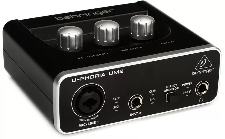 The ultra-sleek Behringer U-Phoria UM2 audio interface is engineered to deliver superior sound fidelity and a wide range of connectivity options. In addition, its simplicity of design makes it the perfect choice for dedicated home studio users and professional musicians who want precise, astounding results quickly.
